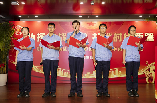 活动在庄严热烈的气氛中拉开帷幕。主持人宣布活动开始后,来自集团各单位的16支代表队依次登台,围绕“烽火淬炼山河志”“铁骨赤忱铸脊梁”“初心如炬传薪火”“盛世逐梦启新程”四个篇章,深情朗诵了《如果我生活在那个年代》《我的抗战》《枪响处 山河醒》《诗颂风华》《钢枪与塔吊的变奏曲》《与梦同行》《诗意中国》等一批优秀原创及经典诗歌作品。