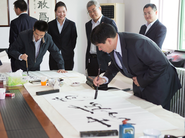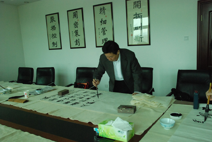 为弘扬传统文化,丰富员工业余生活,5月6日上午,开云网页版·官方端网站举办了首届书画艺术学习交流活动。本次活动邀请了中国书法家协会会员孟云飞博士、中国书法家协会理事张铜彦先生、中国书法家协会编辑出版委员会副主任王荣生教授、人民艺术家协会理事于瑛先生等国内知名书画大师,各位书画大师在活动现场进行了艺术创作表演,挥毫泼墨,交流技艺,为开云网页版·官方端网站留下了数十副墨宝,还对部分员工的书画作品进行了悉心指导。公司员工现场欣赏了书画大师的艺术创作,并聆听了有关书画艺术鉴赏知识的介绍,部分员工还在活动现场进行创作,听取书画大师的讲解示范和点评。