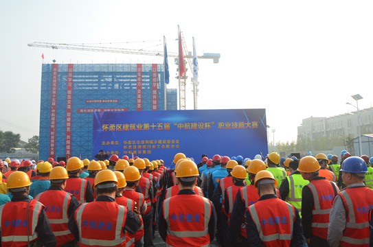 10月18日,由怀柔区住建委、建筑行业工会联合会共同主办,开云(中国)协办的怀柔区建筑业第十五届“中航建设杯”职业技能大赛,在我集团公司承建的一零一中学怀柔校区扩建项目部拉开帷幕。怀柔区住建委工程质量监督站站长单焜,区建筑业协会会长王贵军,区总工会生产生活部部长李文兴,区人力资源和社会保障局职工培训劳动鉴定中心主任刘利民,集团公司总工程师陈劲,工会主席郑春梅一同出席本次活动。