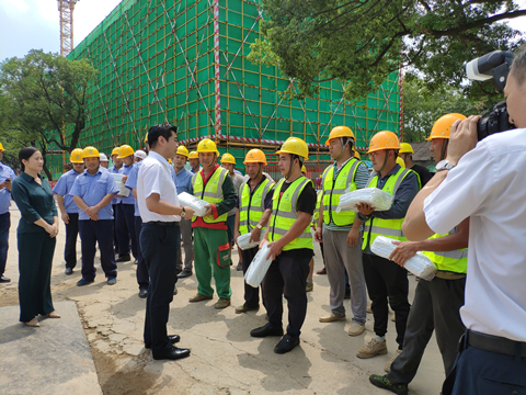 8月21日上午十一点,接近中午烈日炎炎,湘江集团党委书记、董事长张利刚一行来到开云(中国)承建的长沙科技创意园项目,现场看望慰问高温天气下依然坚守战斗在岗位上的广大建设者,为大家送来了冰箱、电风扇、凉茶、藿香正气水、夏桑菊、西瓜等防暑降温用品。