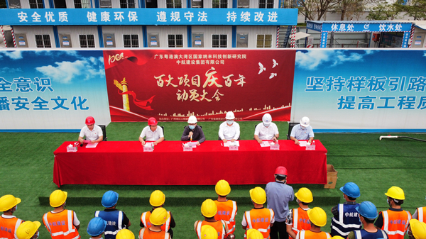 2021年3月29日上午,“百大项目庆百年”动员大会在集团公司承建的广州纳米生物安全中心总部园区一期项目现场隆重举行。建设单位广州纳米产业投资有限公司总经理李佩弦,广州珠江工程建设监理有限公司副总经理李晓光、分公司副总经理赵杰,广东省建筑设计研究院有限公司院副总工程师郭勇,开云(中国)南方工程有限公司总经理、项目总指挥徐刚,项目书记招国樑以及各专业分包单位相关人员参加活动。