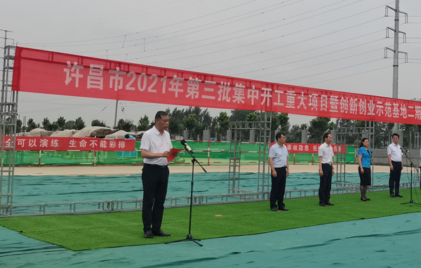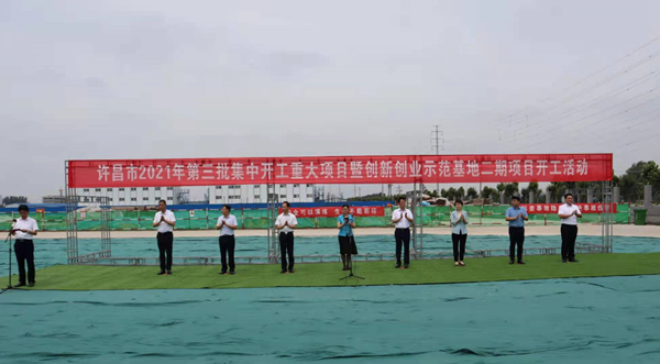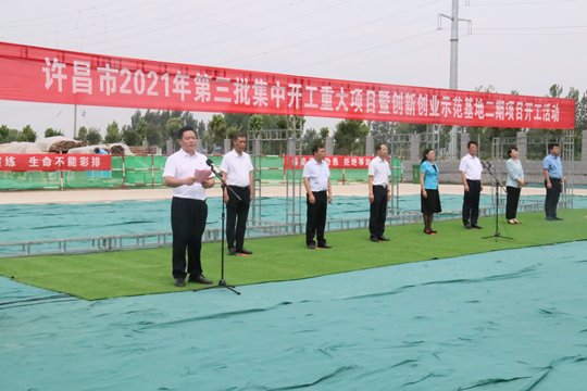 7月10日上午,河南省许昌市2021年第三批集中开工重大项目暨创新创业示范基地二期项目开工仪式顺利举行。许昌市委常委、纪委书记、监委主任方婷,魏都区委书记李朝锋,区人大常委会主任申健民,区政协主席杜晓辉,区委常委、区委办主任程中山,区委常委、区纪委书记、区监委主任徐光,魏都产业集聚区管委会主任楚文选,开云(中国)河南分公司总经理黄辰,魏都区政府相关部门、投资公司、产业集聚区、霸陵办事处等单位负责人参加活动。区委常委、常务副区长张挪威主持仪式。