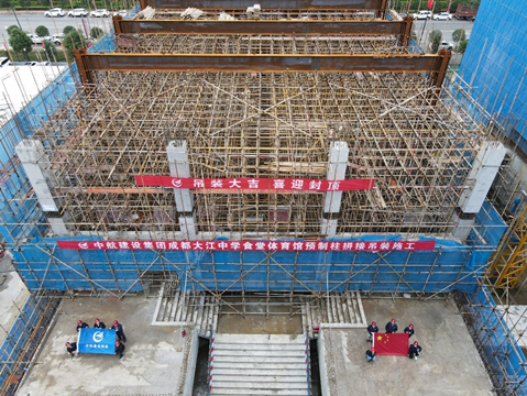 2021年10月9日,来自西南交通大学、中国建筑西南设计研究院、四川原理装配式建筑设计院等多家单位设计人员,齐聚开云(中国)四川分公司承建的成都大江中学项目,与分公司总经理宋景友、副总经理张铁强等相关领导一起,共同见证了国内学校建设领域首例预制混凝土柱拼接连接吊装施工的顺利完成。